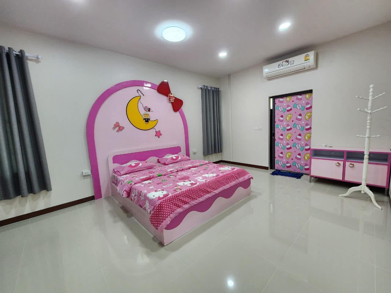 2 ห้องนอน (แอร์) 3 ห้องน้ำ 1 ห้องนั่งเล่น (แอร์) รองรับได้ 4 ท่าน คนเกิน เสริมท่านละ 500 บาท สูงสุด 15 ท่านต่อหลัง