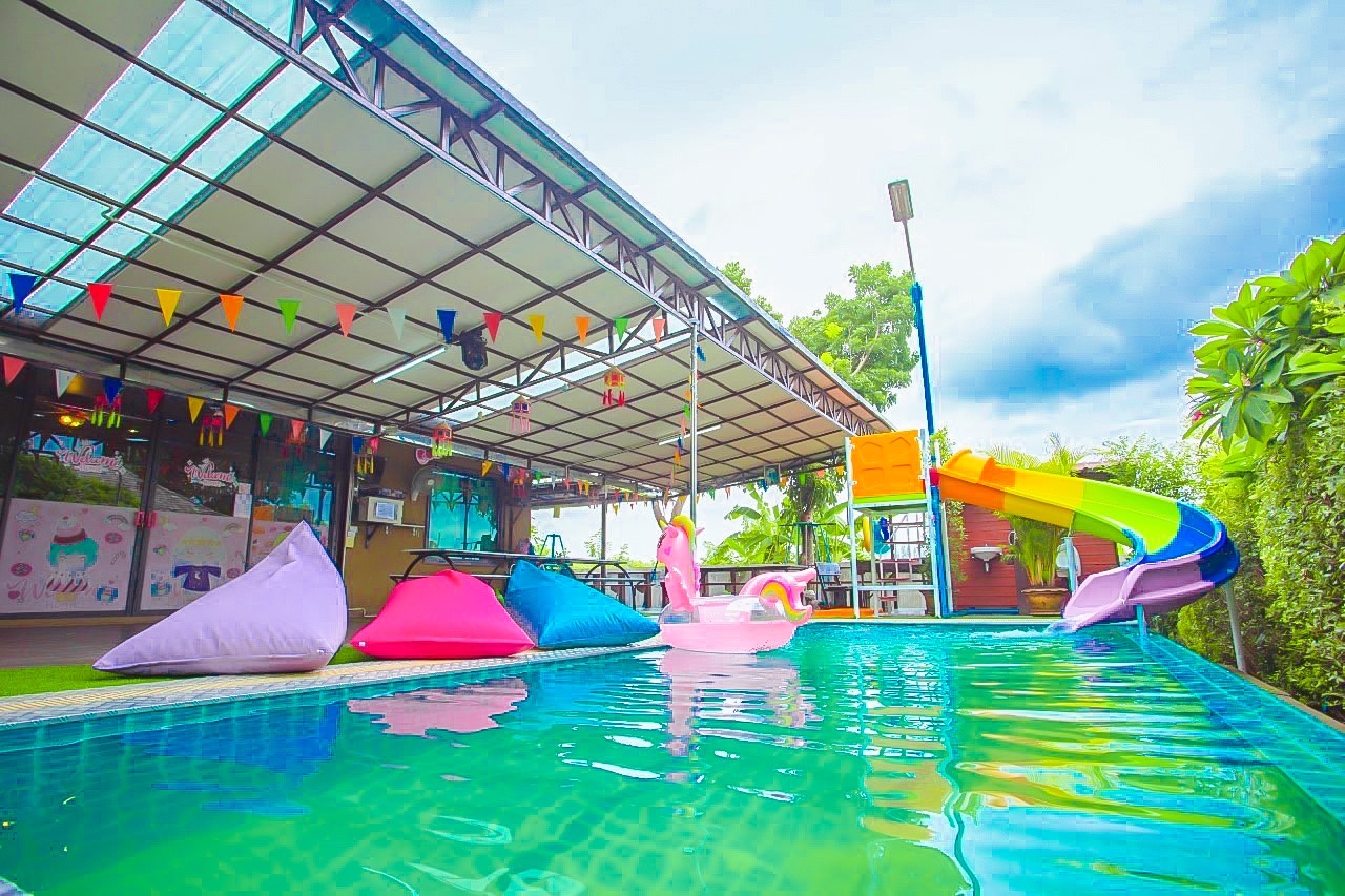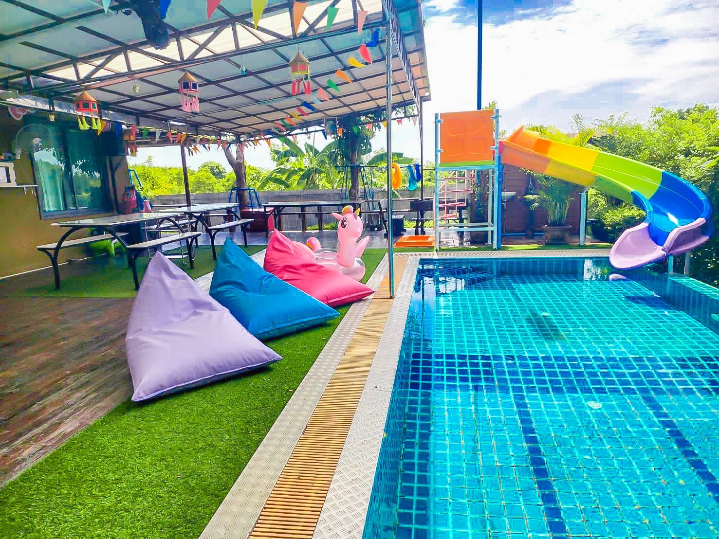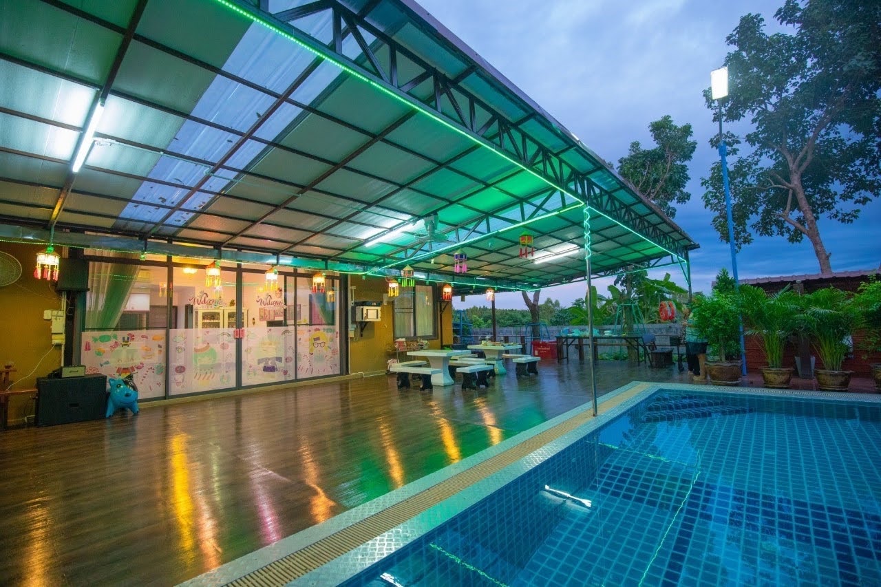 ** มีสระว่ายน้ำส่วนตัว คาราโอเกะ ฟรี wifi พร้อมอุปกรณ์เครื่องครัว+เตาปิ้งย่าง