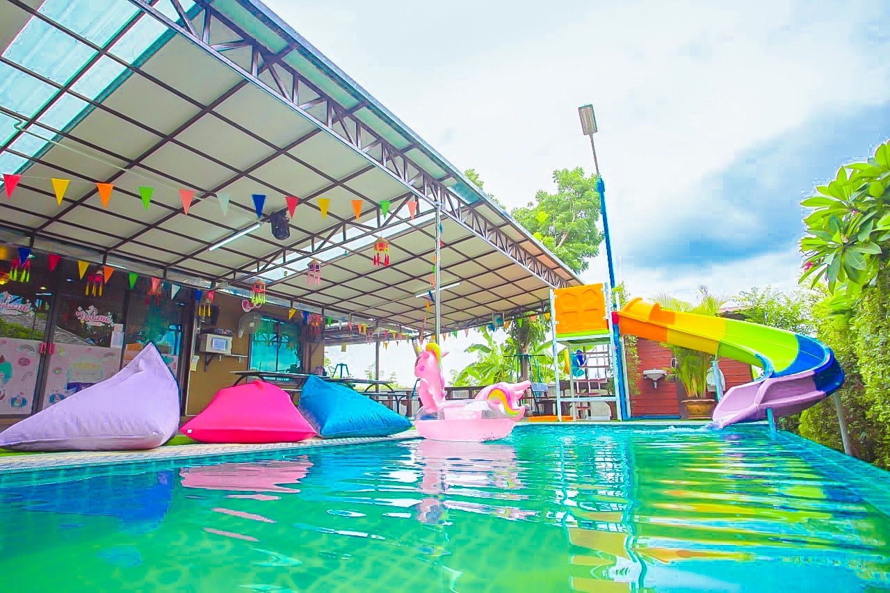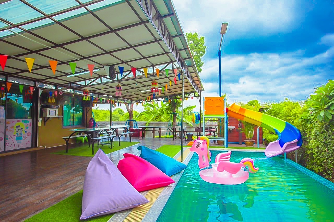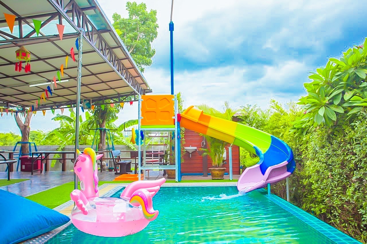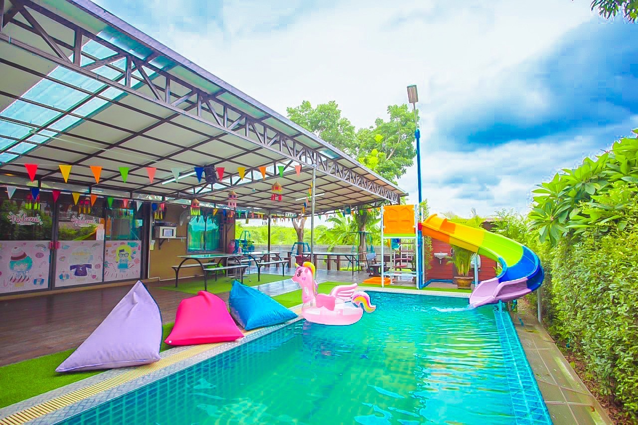 ** มีสระว่ายน้ำส่วนตัว คาราโอเกะ ฟรี wifi พร้อมอุปกรณ์เครื่องครัว+เตาปิ้งย่าง