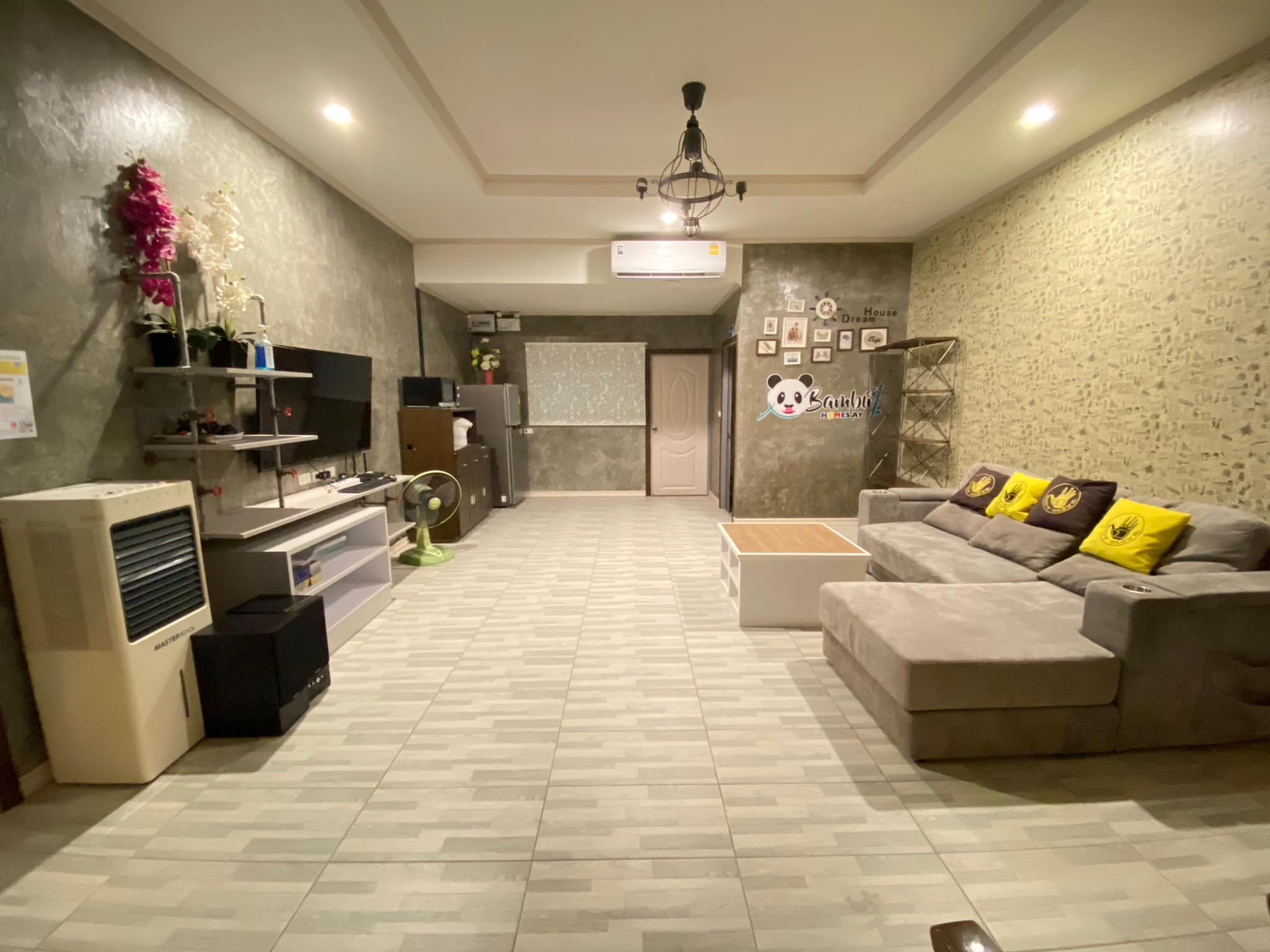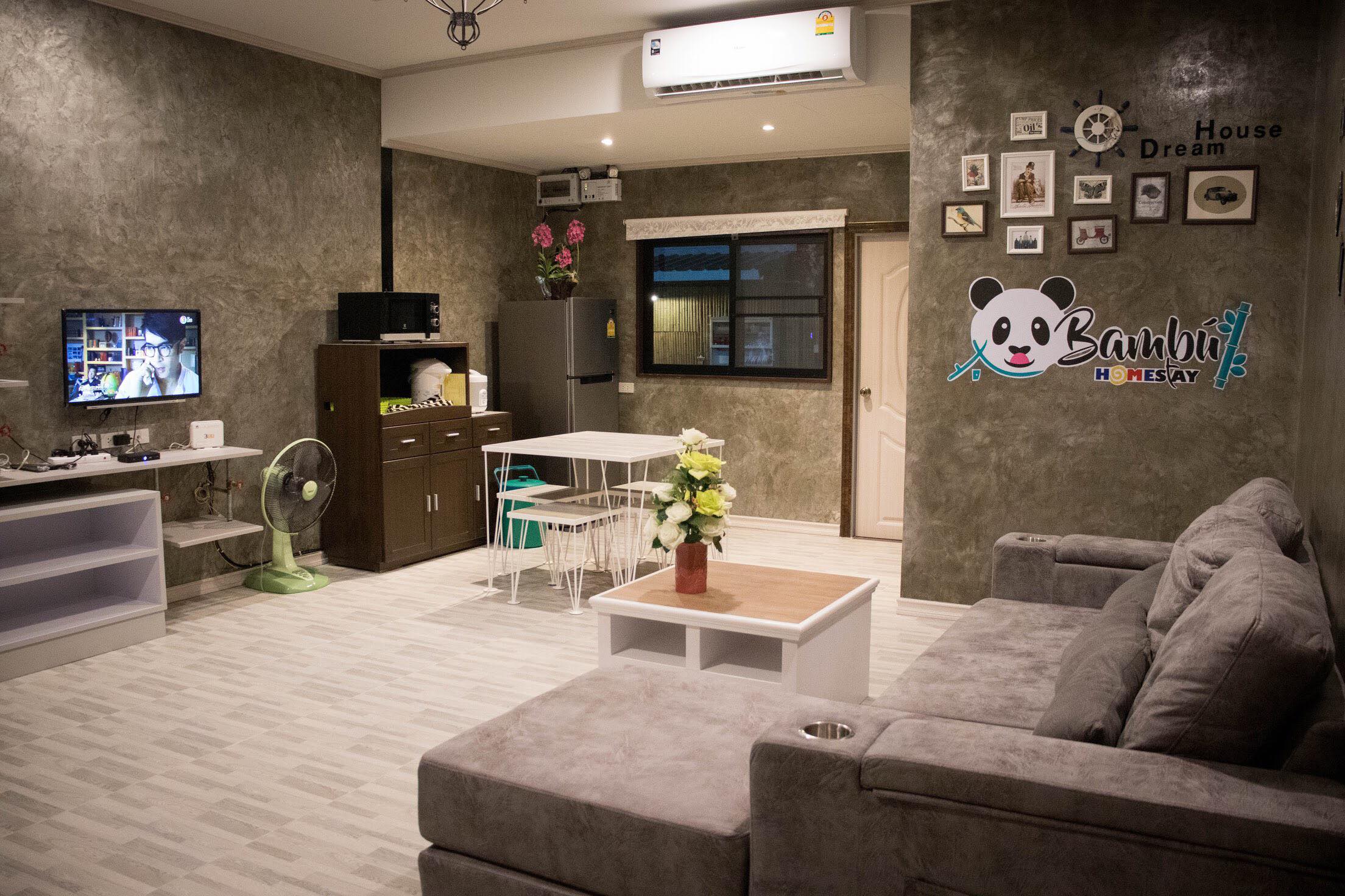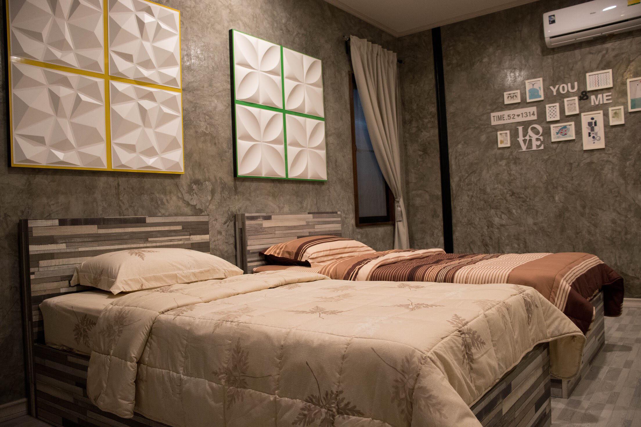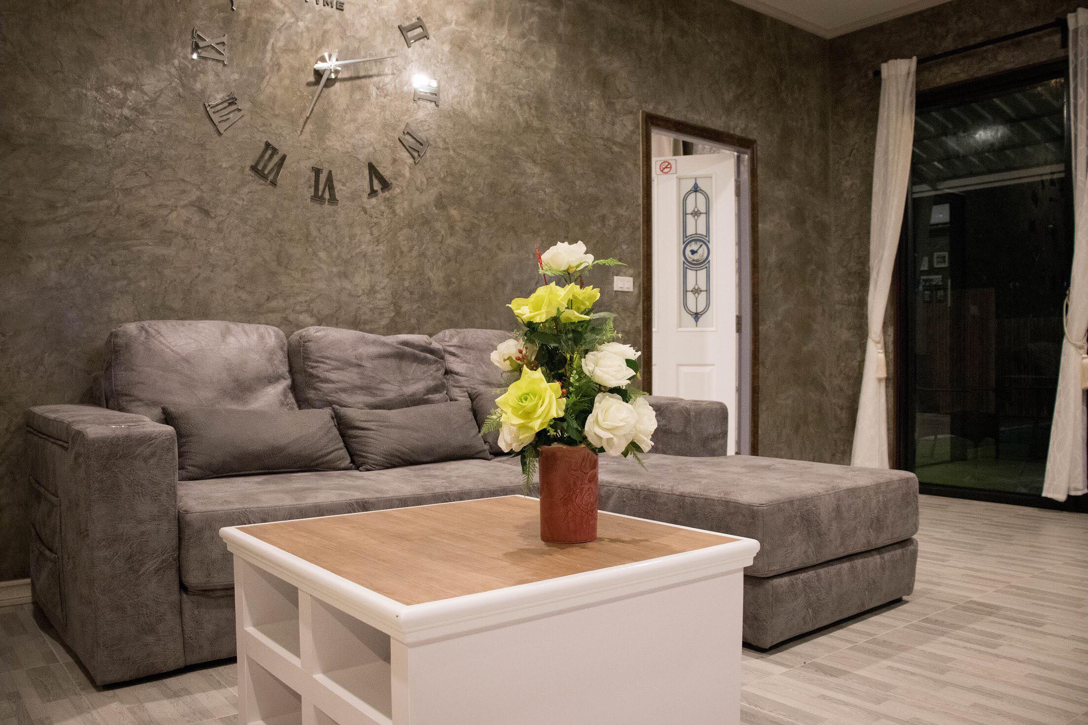 2 ห้องนอน (แอร์) 3 ห้องน้ำ 1 ห้องนั่งเล่น (แอร์) รองรับได้ 4 ท่าน คนเกิน เสริมท่านละ 500 บาท สูงสุด 15 ท่านต่อหลัง