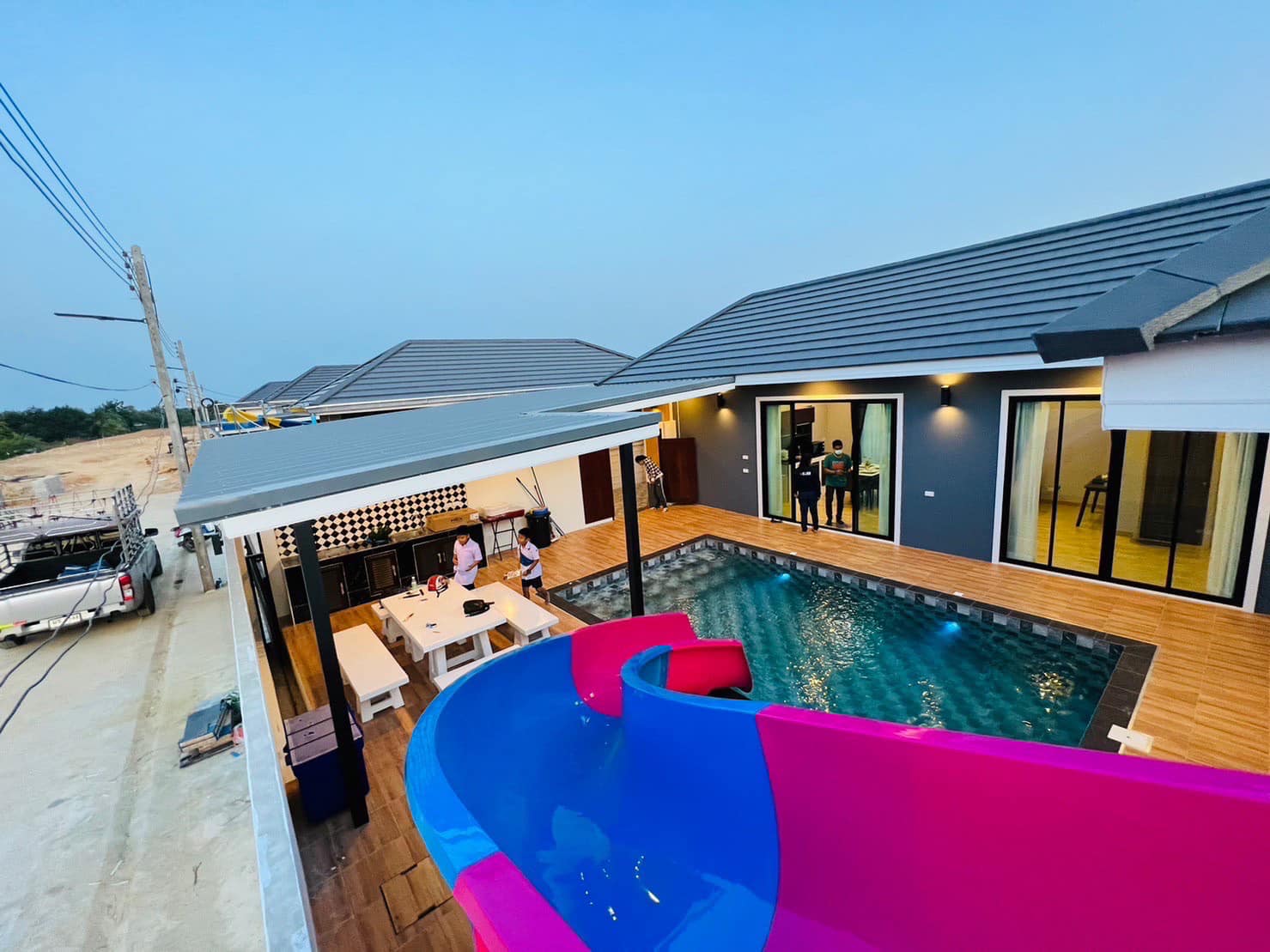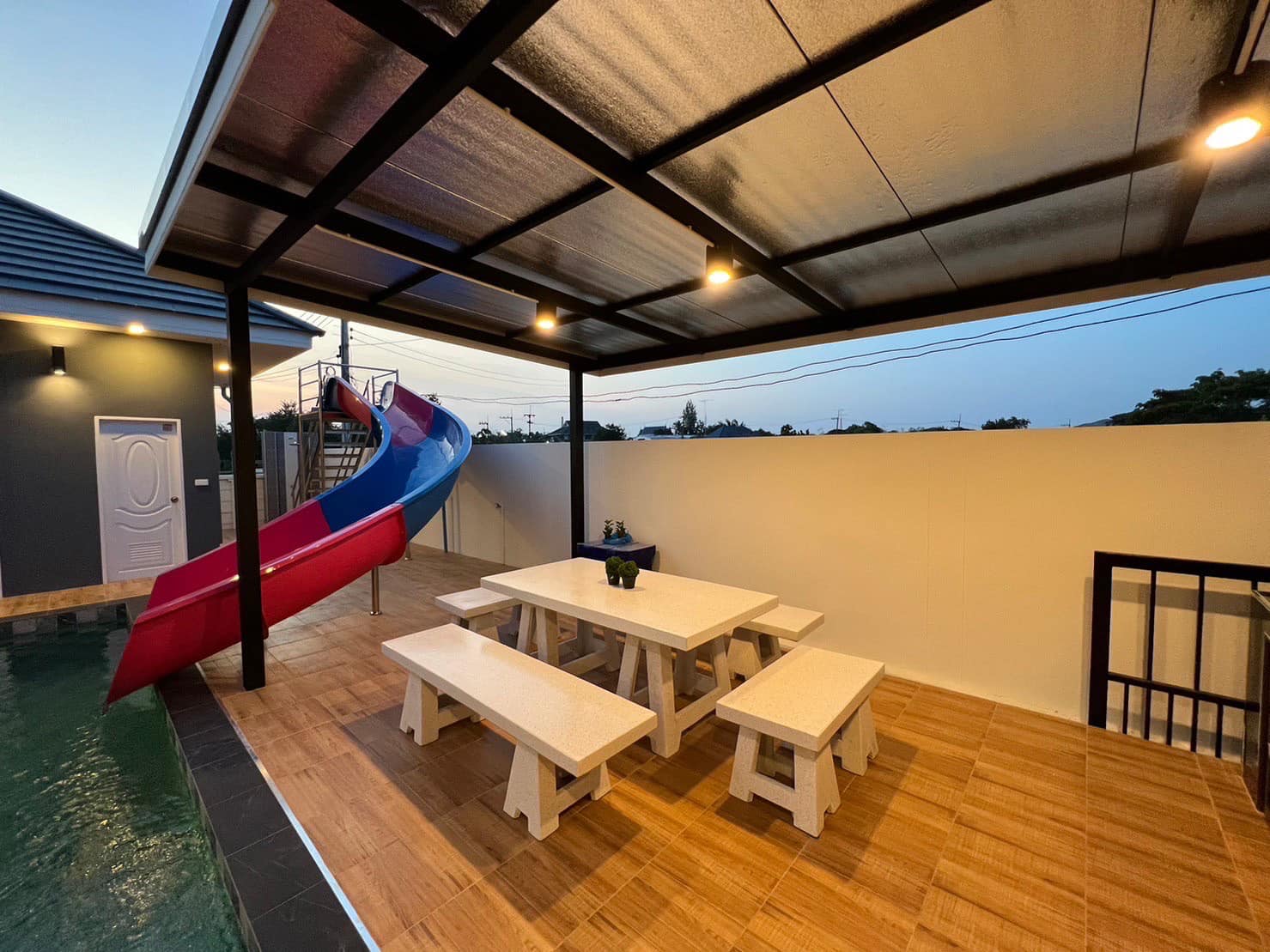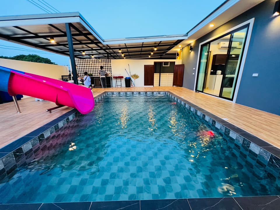 ** มีสระว่ายน้ำส่วนตัว ฟรี wifi พร้อมอุปกรณ์เครื่องครัว+เตาปิ้งย่าง