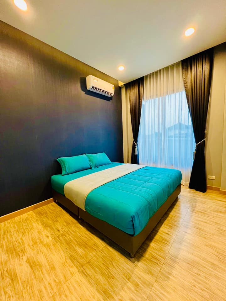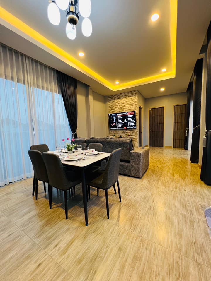 3 ห้องนอน (แอร์) 3 ห้องน้ำ 1 ห้องนั่งเล่น (แอร์) รองรับได้ 10 ท่าน คนเกิน เสริมท่านละ 300 บาท สูงสุด 15 ท่านต่อหลัง